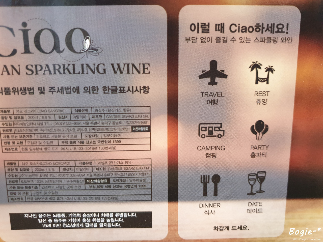 챠오 스파클링와인 모스카토 & 상그리아를